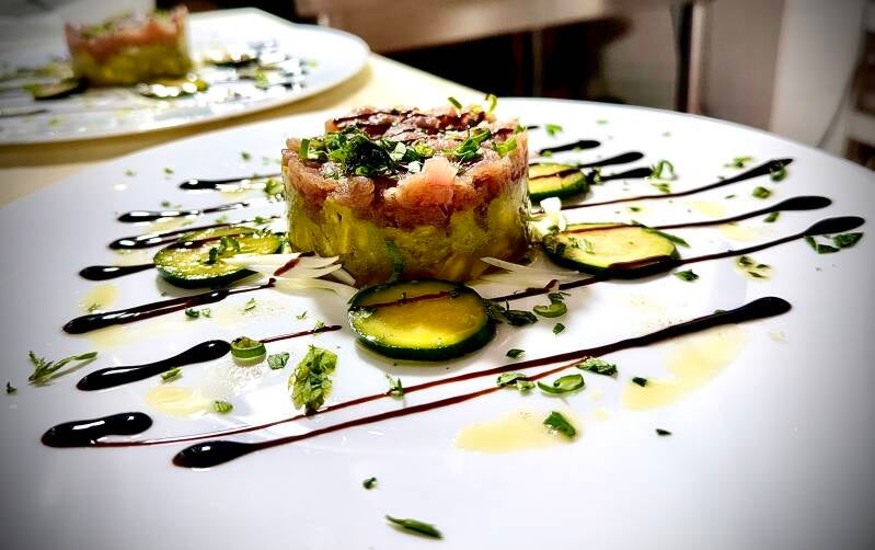 Specializzati nella cucina di pesce fresco, proponiamo ogni giorno tartare, antipasti, primi e secondi piatti che valorizzano le tradizioni locali. Non mancano alternative di carne di qualità per accontentare tutti i palati, né i nostri dolci artigianali, preparati con ingredienti selezionati.